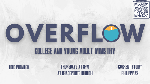Overflow has a very diverse set of believers that meet together weekly. Our ministry includes freshmen in college, all the way to Married couples, and so many areas in between. This allows everyone to have something to add to the conversation, from testimonies, to trials, and life experiences. Overflow provides a much needed spiritual discipleship for a College Aged Believer.