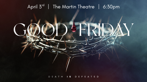 Join us at The Martin Theatre for a powerful night of worship and reflection as we remember the sacrifice of Jesus on the cross. Together, we’ll worship, listen and take communion to fix our hearts on the depth of His love—a love that changes everything.